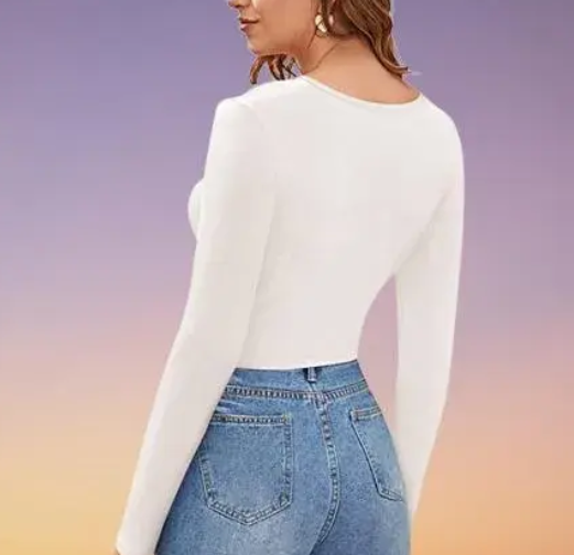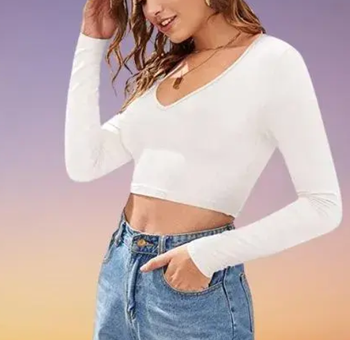 Name : Casual Polyester Blend V-Neck Full Sleeves White Crop Top (17″Inches)
