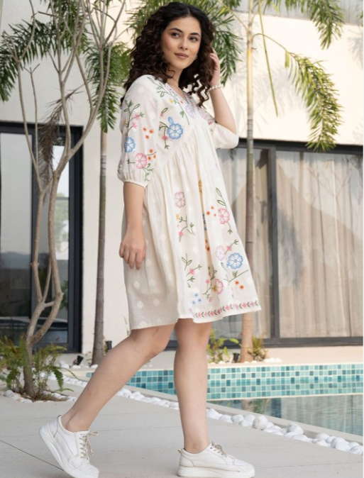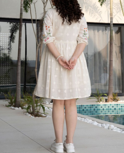 Be the first to review “ZUMMER Cotton Floral Embroidered Puff Sleeve Empire Dress”